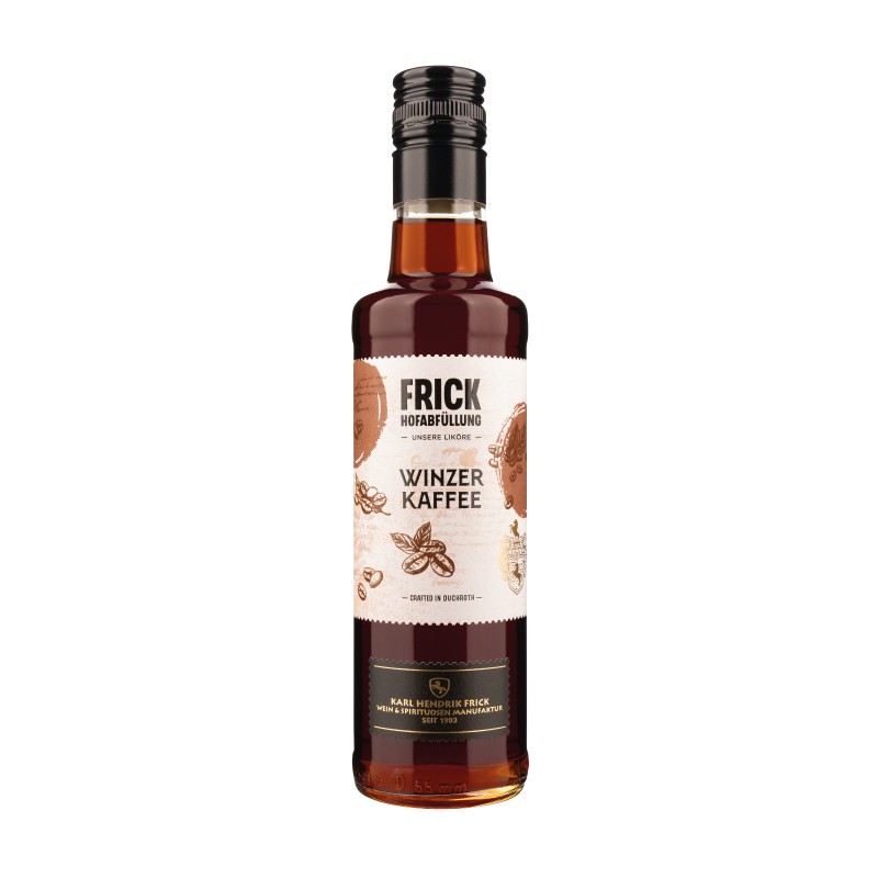 Der Winzerkaffe aus derWein & Spirituosen Manufaktur Frick ist ein herrlich aromatischer Kaffeelikör der mit altem, gereiftem Weinbrand hergestellt wird. Pur, gut gekühlt, auf Eiswürfeln und in heißer Schokolade oder über Desserts ein echter Genuss. Frick Hofabfüllung, klassische Spirituosen-Spezialitäten, nach eigener Rezeptur, von Hand abgefüllt.