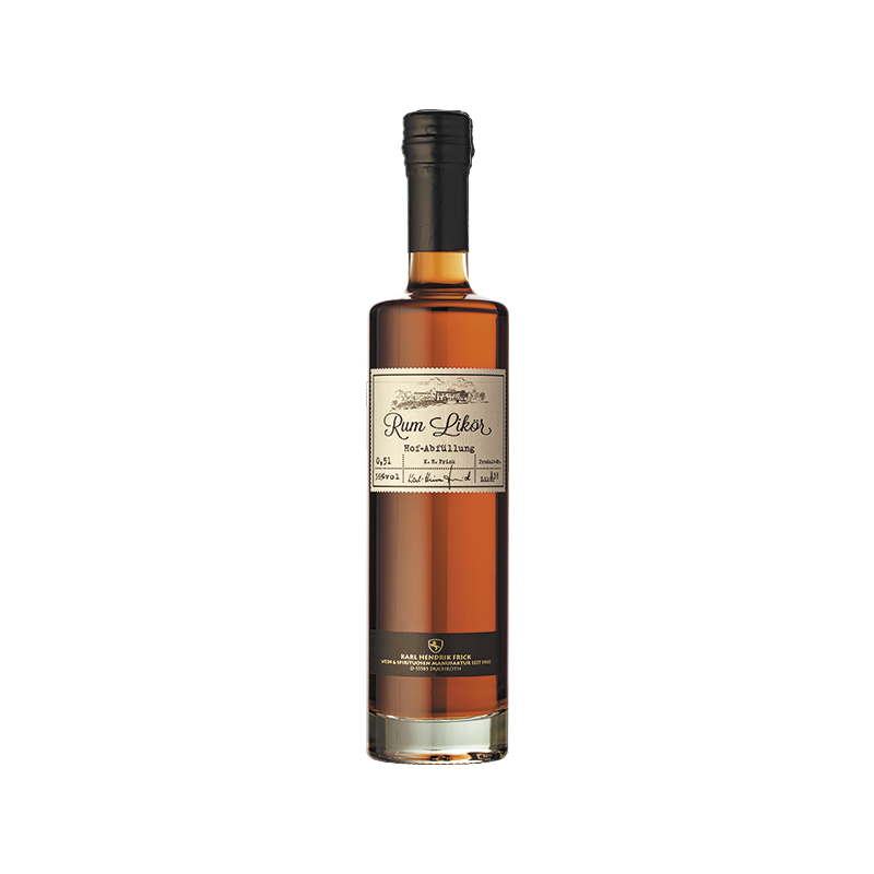 Ein aromatisch, vollmundig intensiver Rum-Likör aus 5 Jahre altem Jamaica-Rum. Karl Hendrik Frick Hofabfüllung, klassische Spirituosen-Spezialitäten, nach eigener Rezeptur, von Hand abgefüllt.